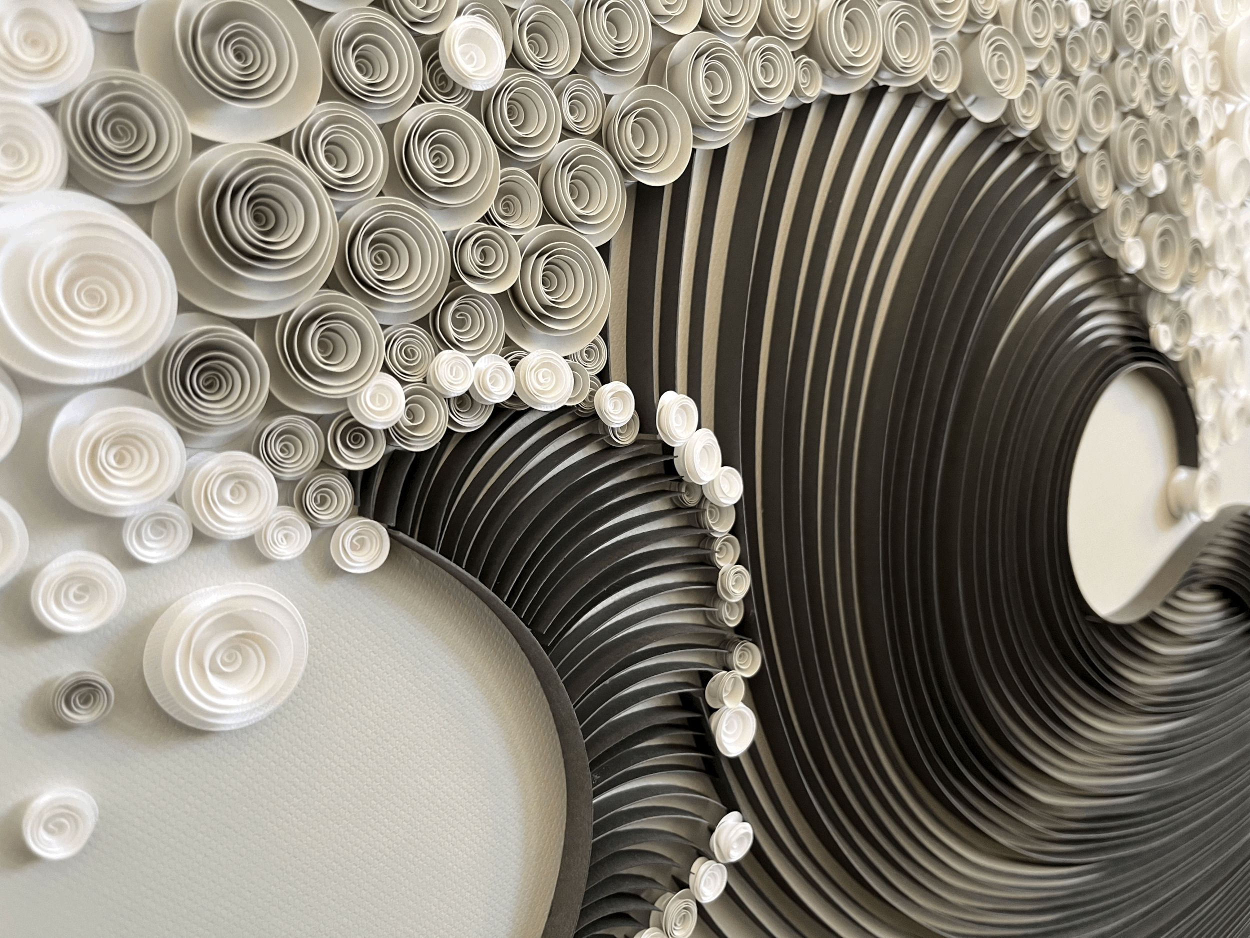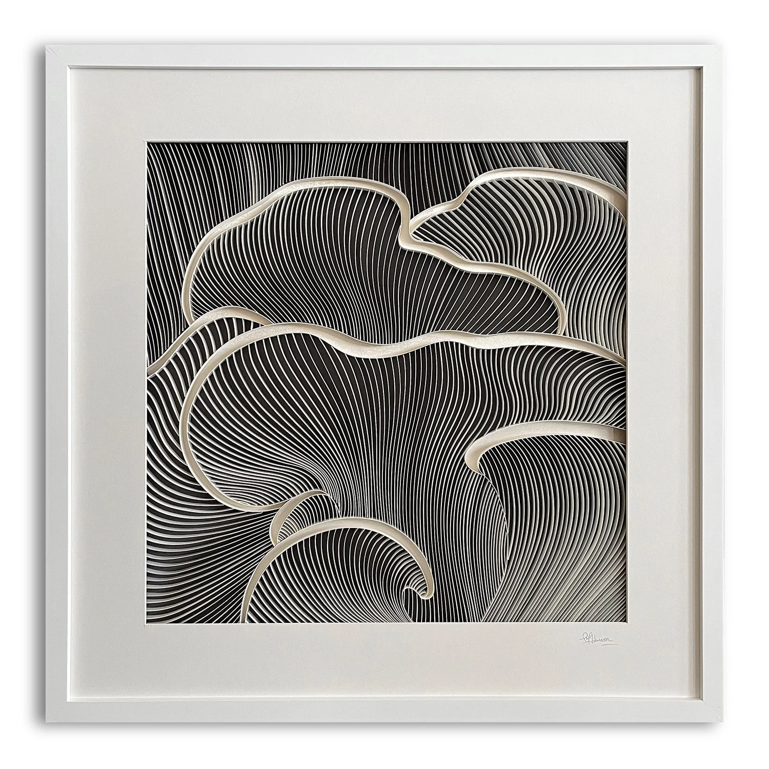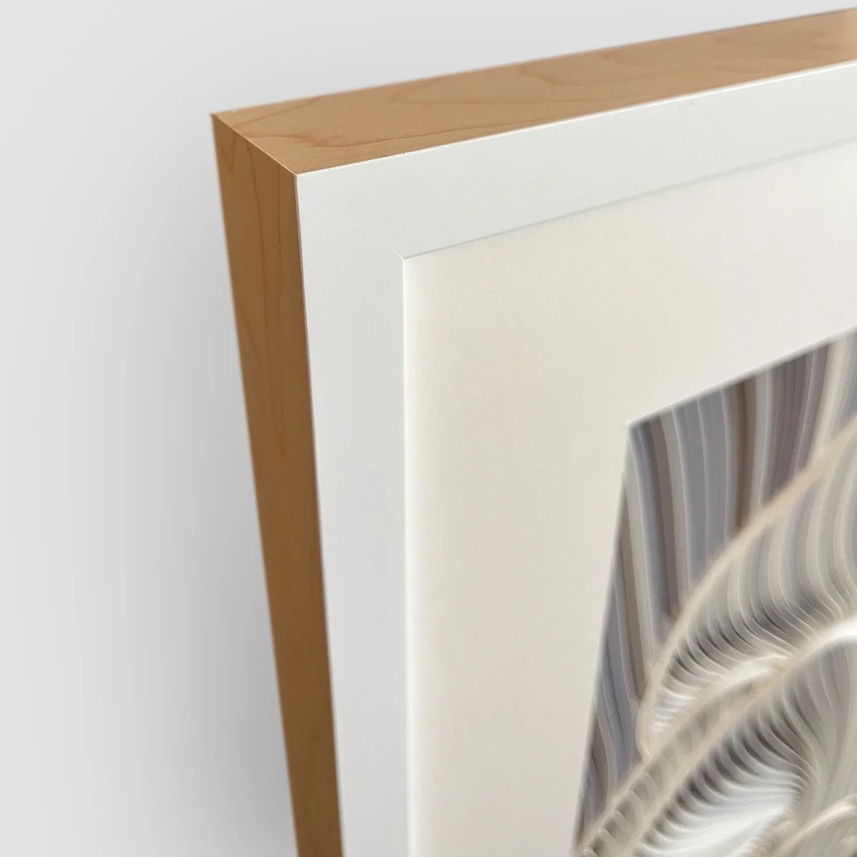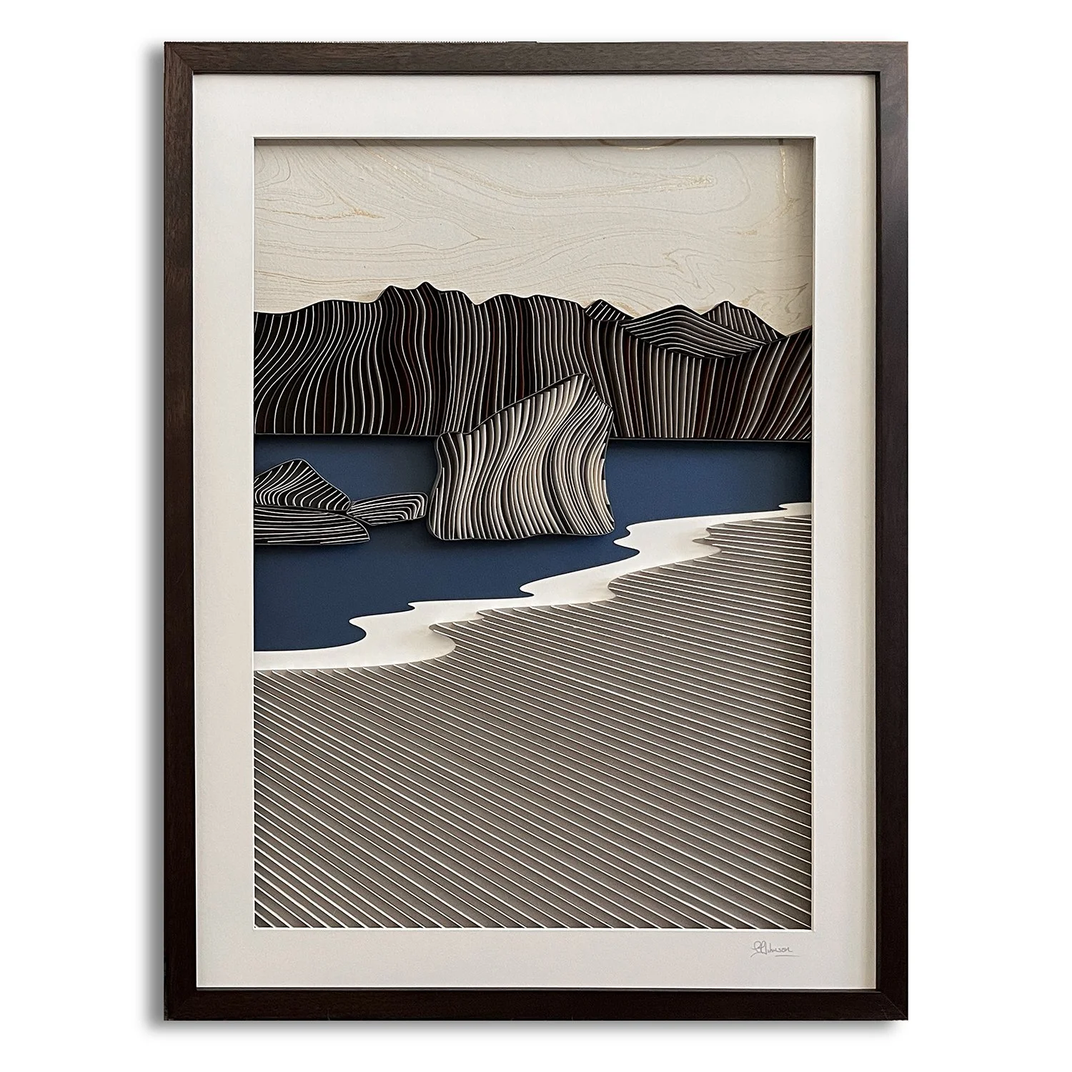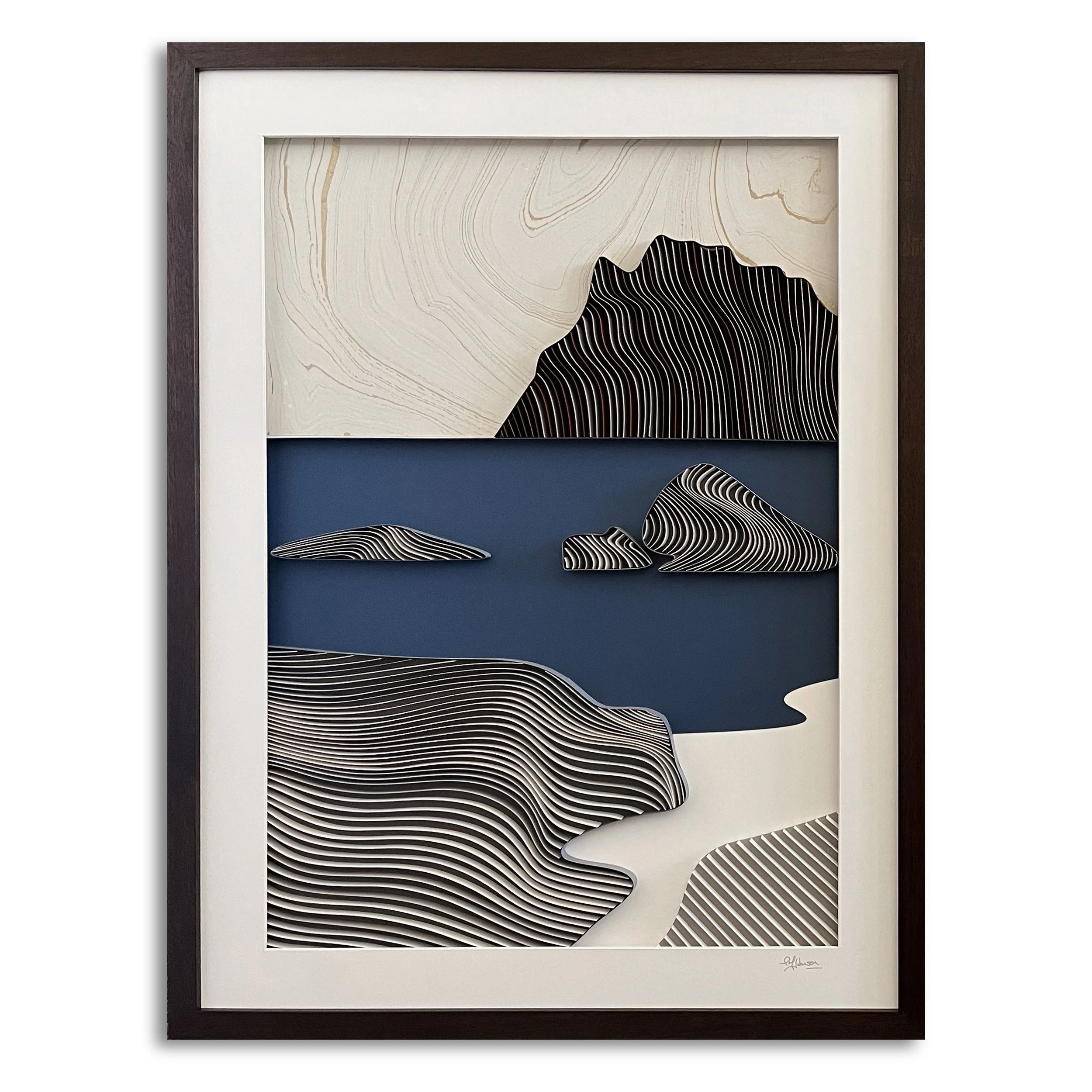 Please note all sales are final. Paper is a beautiful natural medium that can be affected by its environment—specifically moisture and sunlight. All of my works are framed with the highest quality frames I can find and are encased with UV-protective museum glass. Every piece is uniquely hand-crafted so it cannot be duplicated.